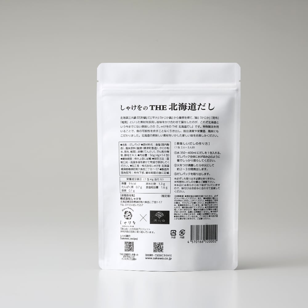 北海道の自然の恵みを凝縮した「しゃけをのTHE北海道だし」は、食卓に風味豊かさを加える特別な一品です。厳選された北海道産の鮭と昆布を使用し、深い旨味を引き出しました。このダシは、和食をはじめ様々な料理にマッチし、気軽に本格的な味わいを楽しむことができます。飲み物としても、また煮物やスープ、リゾット等の料理に活用することで、あなたのレシピの幅が広がります。THE北海道だし14包×3袋+かじかだし粉末のセットです。